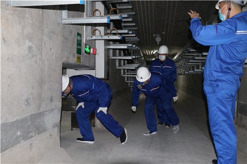 演練過程:首先在綜合管廊二分區入口模擬火災報警事故,隨后進行一系列應急作業,對現場初期火災進行撲滅并通過二分區逃生口進行應急逃生。